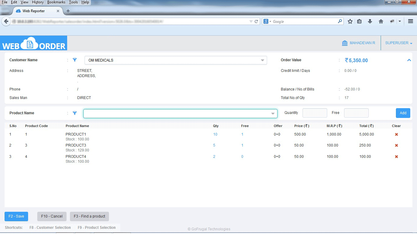 • Save your order processing time and costs with online ordering using GOFRUGAL's WebOrder which will enable your customers and sales reps to order 24*7 directly through the web based tool