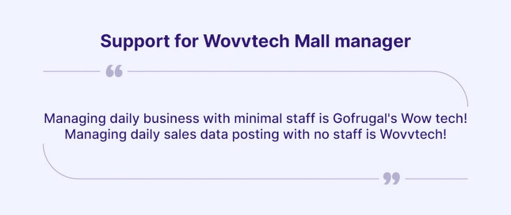 We support updated ADSR ‘Wovvtech’ mall manager integration. At the end of the day, the sales and revenue data from our RetailEasy gets automatically updated in the mall manager solution. So, no discrepancy, and there is clear visibility of daily sales.