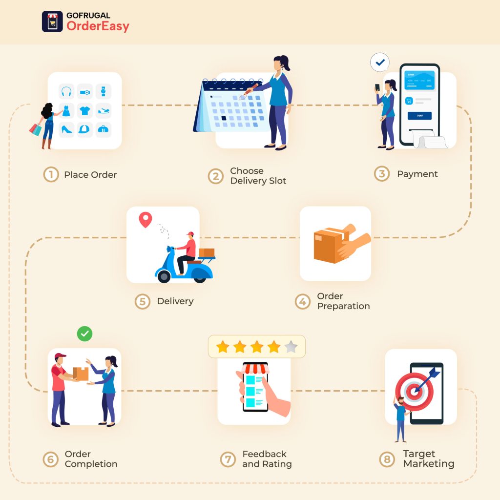 Online orders are always sought for home deliveries, and any ordering app should have an integrated delivery management system. Once the order is completed, preferences for delivery slots with options for free and paid deliveries are provided. Status updates from order execution to completion of deliveries are precisely shared from the app. The last-mile delivery is made memorable with a well-developed online ordering app.