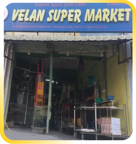 Established in 2018 during Vinayagar Chathurthi, Velan Supermarket in Thondamuthur, Coimbatore, is the brainchild of Saravana Kumar. What started as a modest retail initiative has grown into a fast-paced, high-volume supermarket known for quick billing, sharp inventory control, and customer loyalty.